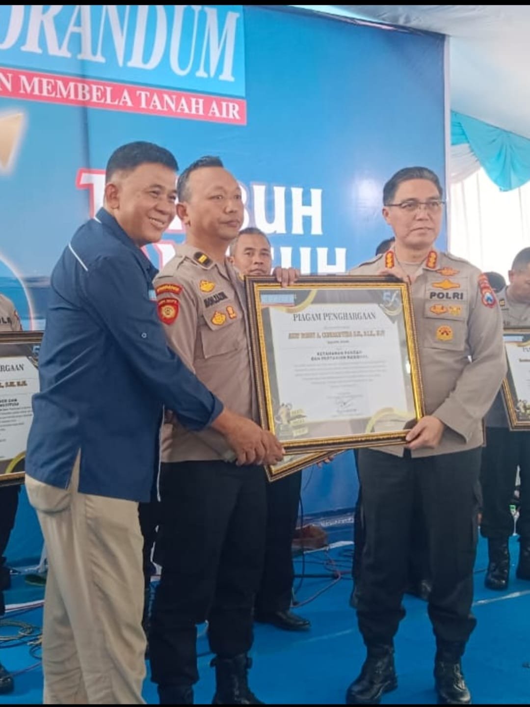 Dalam kesempatan tersebut, penghargaan diterima oleh Kasi Humas Polres Jember Ipda M. Zazim yang hadir mewakili Kapolres Jember.