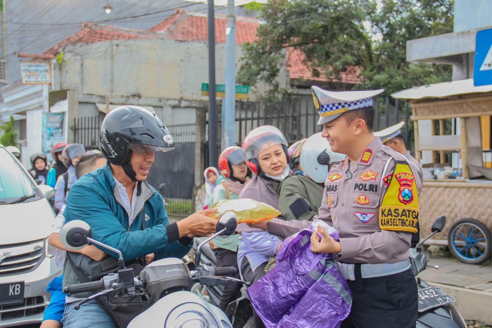 Kali ini, Polantas Jember membagikan jas hujan gratis kepada para pengendara yang dinilai lengkap dan tertib berkendara, sesuai dengan situasi cuaca saat ini yang memasuki musim hujan. Kegiatan berlangsung di depan kantor Sat Lantas Polres Jember dan mendapat sambutan positif dari masyarakat.