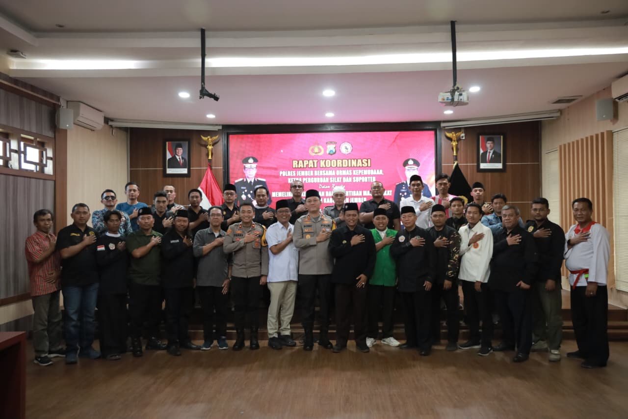 Dengan semangat kolaborasi ini, Polres Jember bersama ormas, pemuda, perguruan silat, dan suporter siap menjaga kota tercinta tetap aman dan kondusif. (AR)